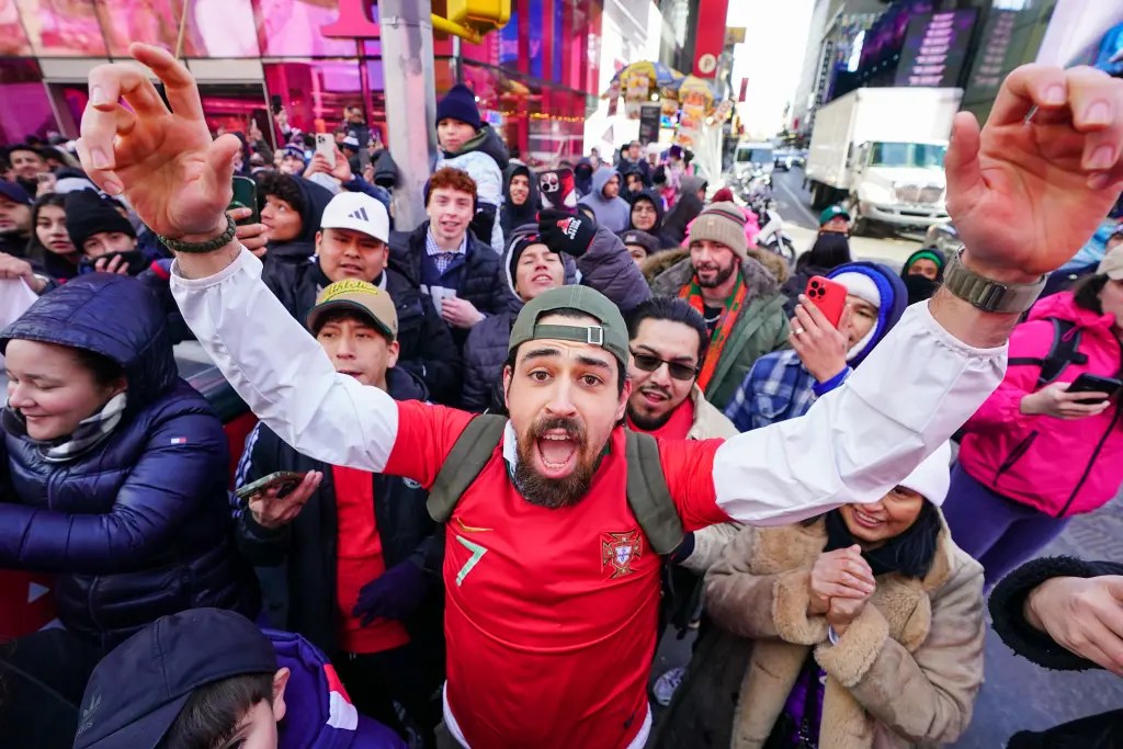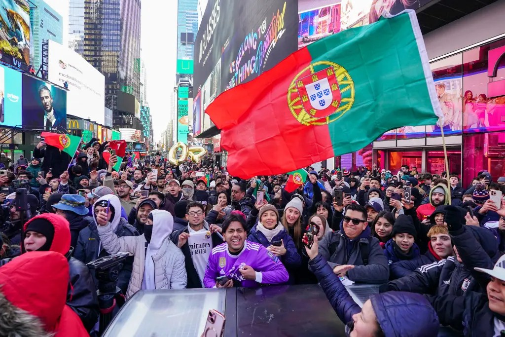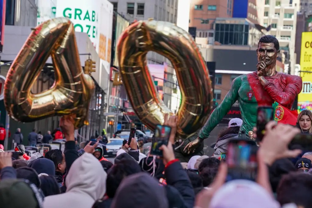 El monumento montado en camión, pintado en verde, rojo y dorado, atrajo a multitudes, donde los fanáticos que agitaban la bandera portuguesa cantaron el canto de celebración de su jugador favorito de «¡Siu!»