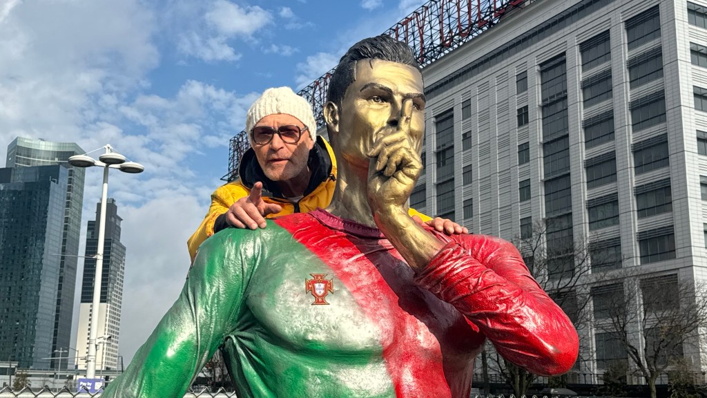 El reconocido escultor Sergio Furnari creó la escultura de bronce de tres metros y medio de altura para «inmortalizar la esencia de Cristiano Ronaldo no solo como deportista, sino como un icono cultural que ha inspirado a miles de millones en todo el mundo», según su página oficial.