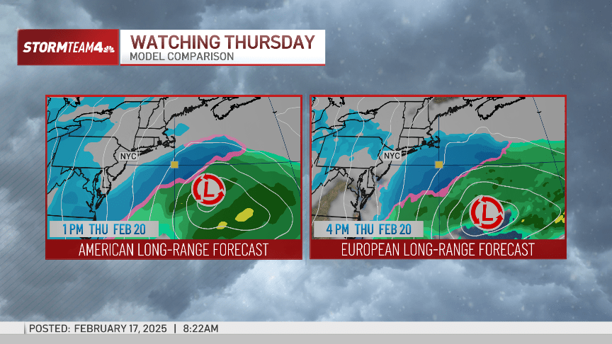 Los modelos están llegando a un acuerdo más cercano en este momento con Nueva York perdiendo el mayor de los pronósticos, y la mayoría ahora muestra la tormenta demasiado al este en el Atlántico para traer mucha nieve.