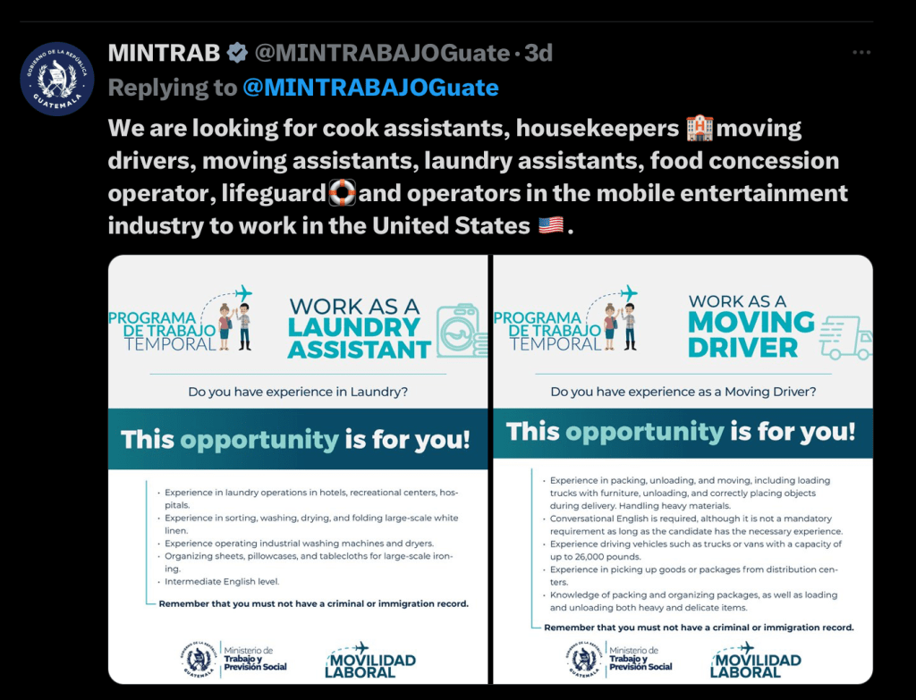 También debe estar pendiente de las redes sociales del Ministerio de Trabajo ya que publican opciones laborales, algunas de ellas para Estados Unidos.