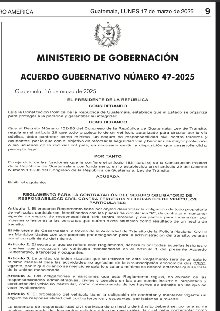 Los automovilistas reclaman que se haya “impuesto” un seguro, el cual pocos podrán pagar debido a los bajos sueldos en Guatemala. Varios sectores se ha pronunciado contra esta medida gubernamental.