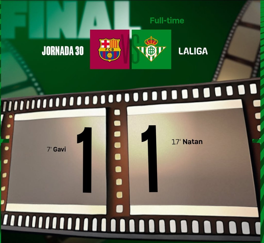 El Barcelona desperdició una oportunidad inmejorable de aumentar su ventaja como líder de LaLiga al empatar 1-1 en casa ante el Betis, tras la sorpresiva derrota del Real Madrid horas antes ante el Valencia.