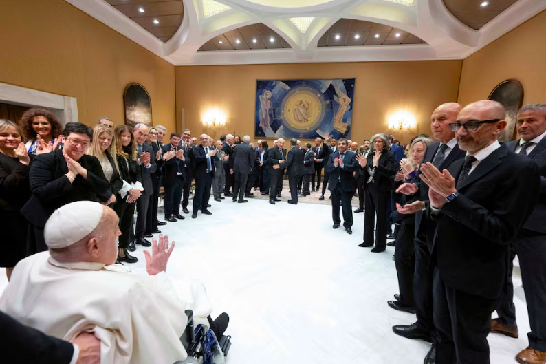 El papa Francisco agradeció el miércoles a los miembros del equipo médico que le salvaron la vida durante una estancia de cinco semanas en el hospital por un grave caso de neumonía doble, hablando en voz baja pero respirando sin oxígeno en la reunión en el Vaticano.