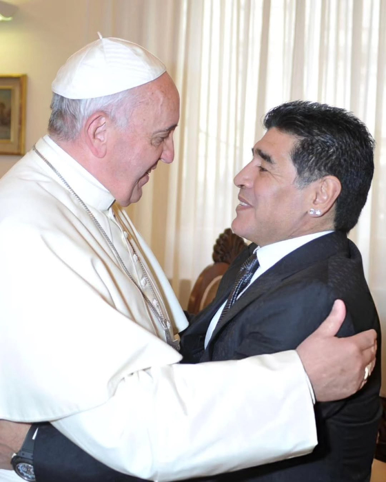 Francisco se reunió dos veces con su compatriota argentino Maradona como papa. Hubo una audiencia especial en relación con un partido de fútbol benéfico en 2014 cuando Maradona le presentó al pontífice una camiseta de fútbol, con el nombre “Francisco” y el número diez de Maradona.