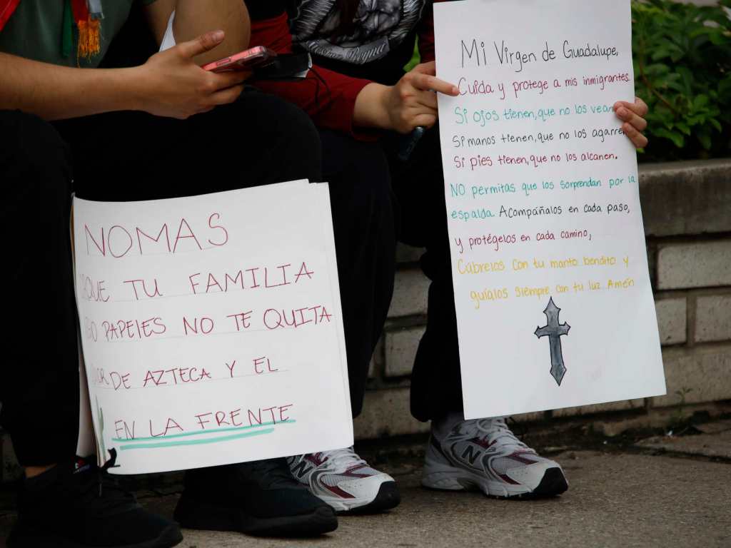 “Los migrantes no son criminales. Exigimos respeto y que ICE salga de nuestras comunidades”, expresó uno de los manifestantes, entre aplausos y carteles con mensajes de resistencia de los presentes.