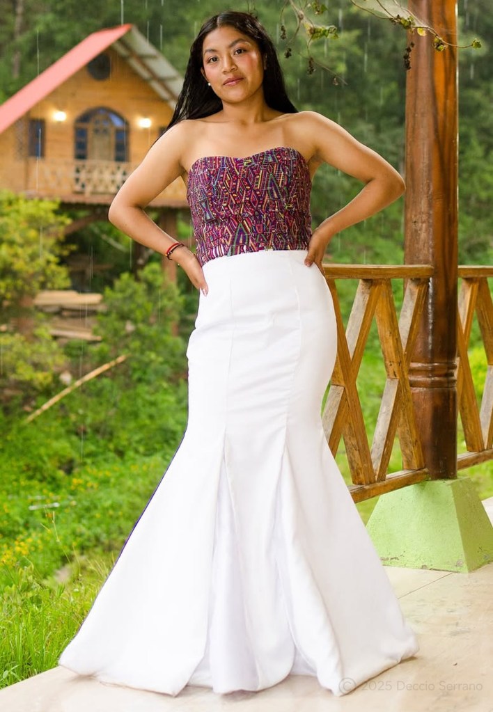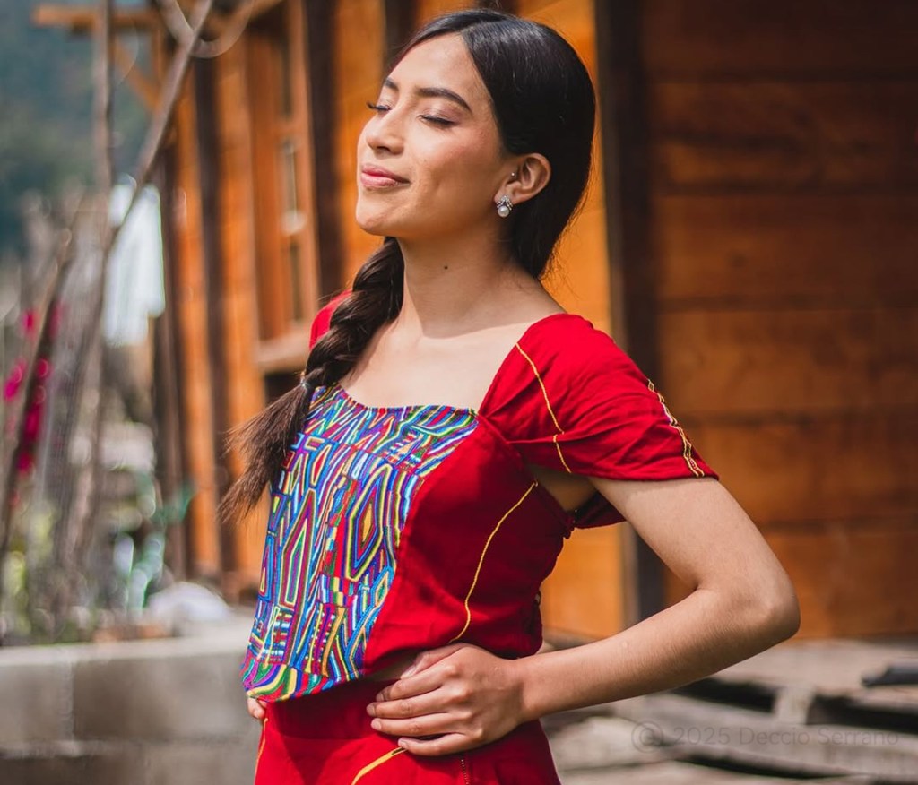 Formada en el Técnico en Diseño Industrial de Vestuario de INTECAP Guatemala, ha encontrado en la moda un medio para proteger su herencia, honrar su territorio y transformar la tradición en expresión creativa.