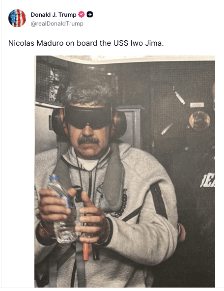Ambos ya habían sido imputados en 2020. Trump aseguró que la pareja fue trasladada a bordo del buque de guerra estadounidense Iwo Jima y se dirige a Nueva York para enfrentar la justicia.