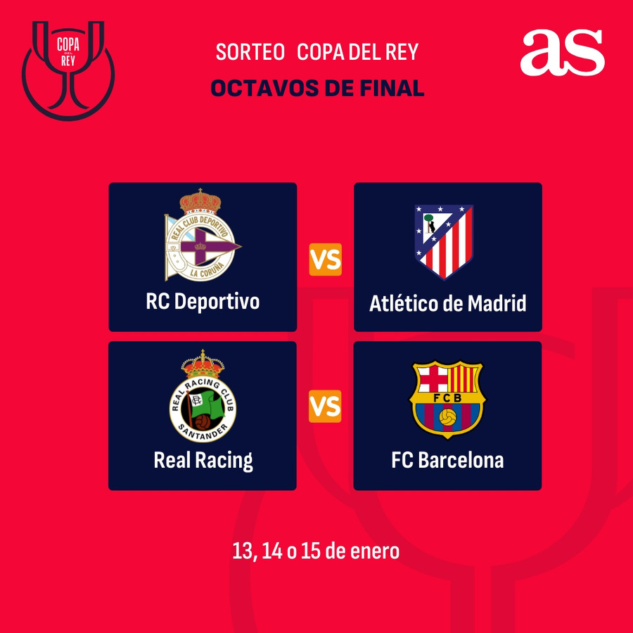 La Copa del Rey ya tiene definidos sus octavos de final y el sorteo vuelve a encender la magia del torneo: Real Madrid, Barcelona, Atlético de Madrid y Athletic Club, inmersos en la Supercopa de España, deberán viajar y enfrentarse a equipos de Segunda División en una ronda que se juega a partido único. El margen de error es mínimo; la ilusión de los modestos, máxima.