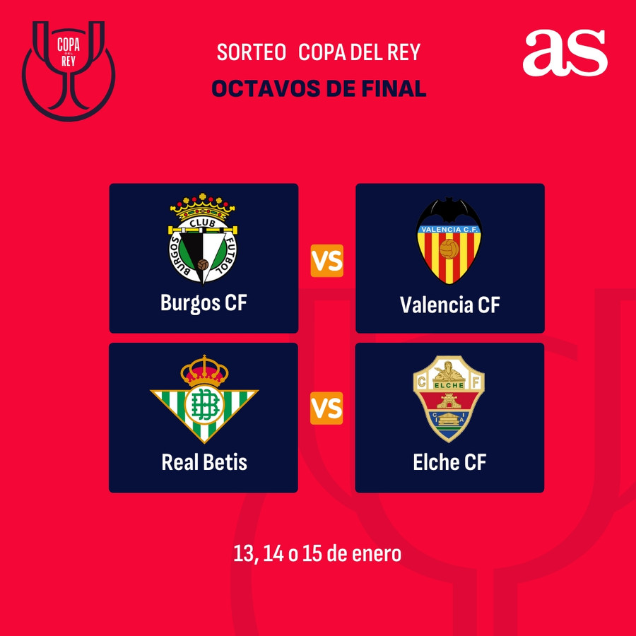 El resto del cuadro presenta choques de alto voltaje: el Valencia viajará a Burgos; el Betis recibirá al Elche; la Real Sociedad se enfrentará en casa a Osasuna; y el Alavés será local ante el Rayo Vallecano. Ocho eliminatorias, una sola noche por cruce y un boleto directo a cuartos en juego.