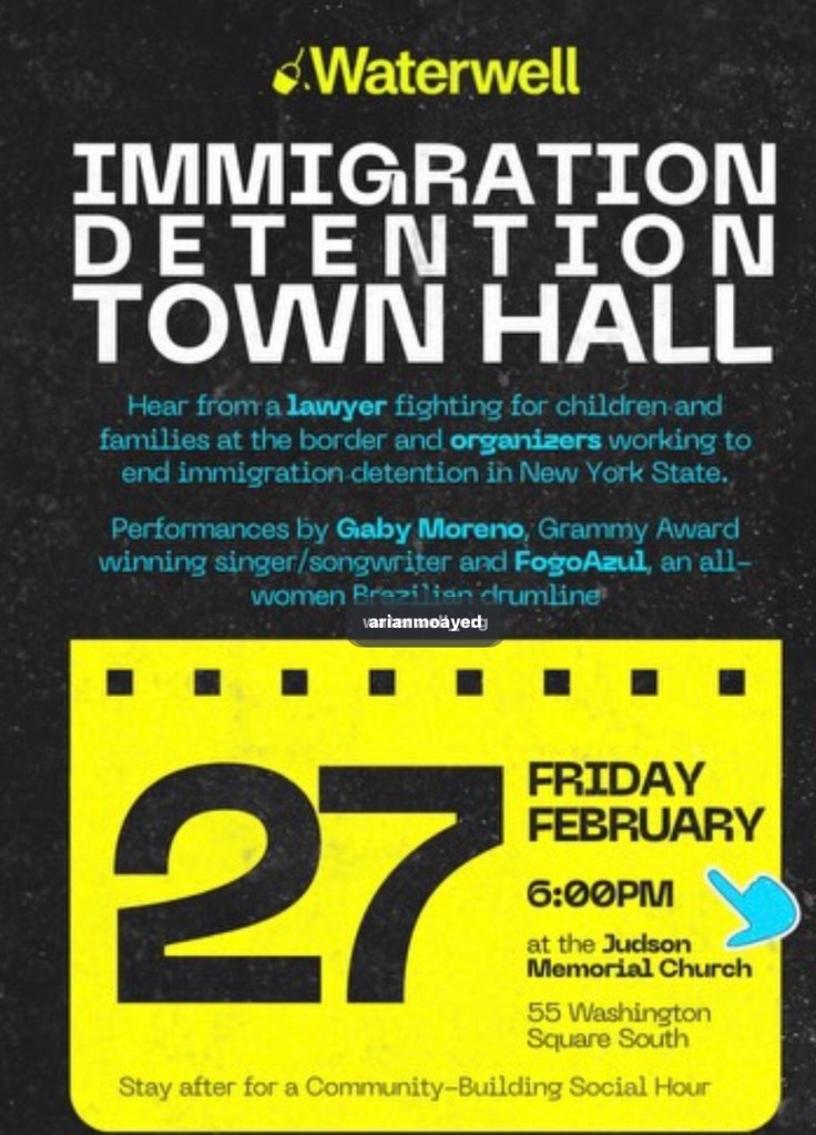 “Ayuntamiento de detención de inmigrantes”, se llevará a cabo el viernes 27 de febrero en Jucison Memorial Church, 55 Washington Square South, Nueva York, Nueva York a partir de las 6:00 de la tarde. Es un evento gratuito, pero es necesario confirmar la asitencia.