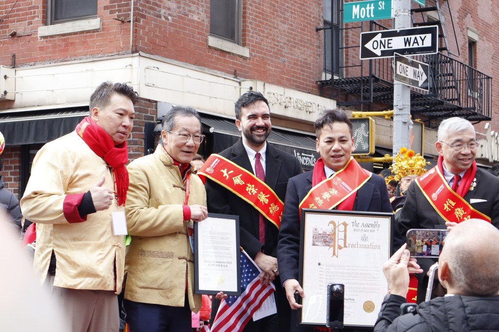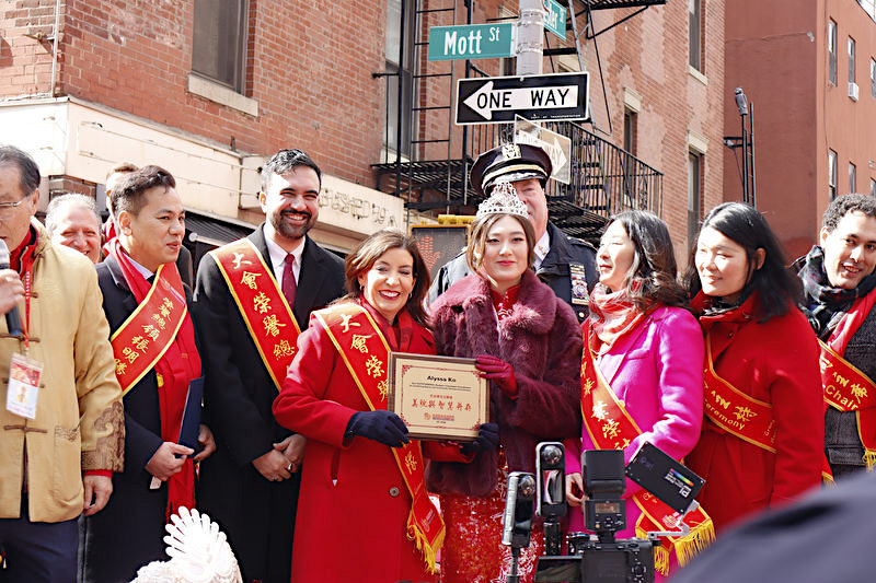 La apertura del desfile contó con la presencia de los máximos funcionarios de la Capital del Mundo: la gobernadora Kathy Hochul y el alcalde Zohran Mamdani, quienes fueron ubicados en una tarima junto a los máximos representantes de la comunidad asiáticas y otras personalidades de la política.