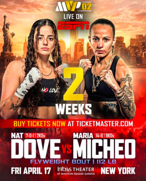 La boxeadora guatemalteca María Micheo se alista para uno de los combates más importantes de su carrera este viernes 17 de abril en Nueva York, cuando enfrente a la estadounidense Natalie Dove en la cartelera MVP 02 de Most Valuable Promotions, en una cita que podría acercarla al sueño del título mundial.