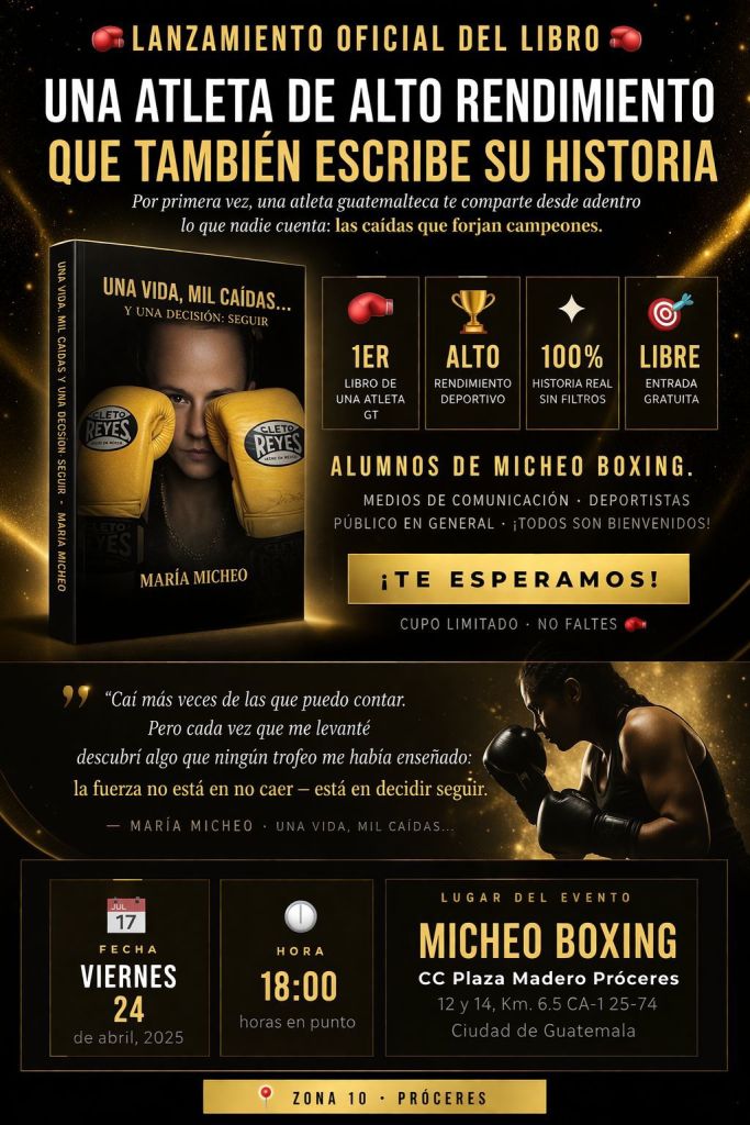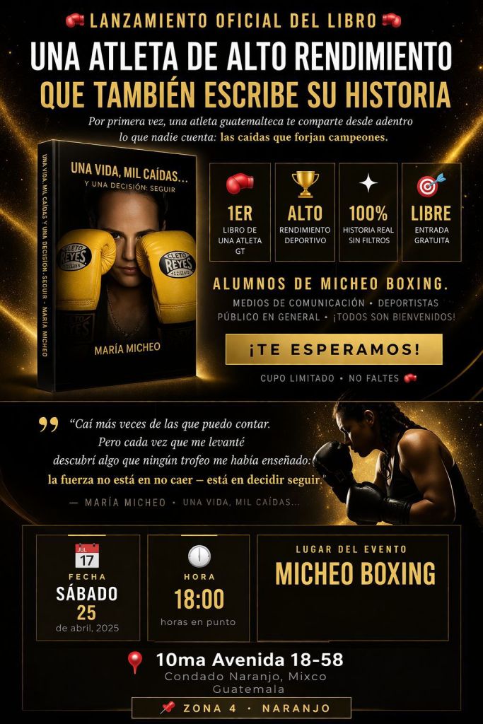 “Vienen historia muy duras, algo que realmente mucha gente no se imagina. Estoy abriendo mi vida completamente”, explica la boxeadora guatemalteca María Micheo acerca del libro autobiográfico ‘Una vida, mil caídas… y una decisión: seguir’”, que será lanzado oficialmente hoy en Guatemala.